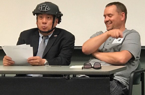 Me? I’ve worked with Mike for years but have never met him in-real-life. This caused much confusion/consternation from almost all the attendees as both of us are labeled as “black clouds” and magnets. So in the name of safety, I took the extra precaution in protecting myself.