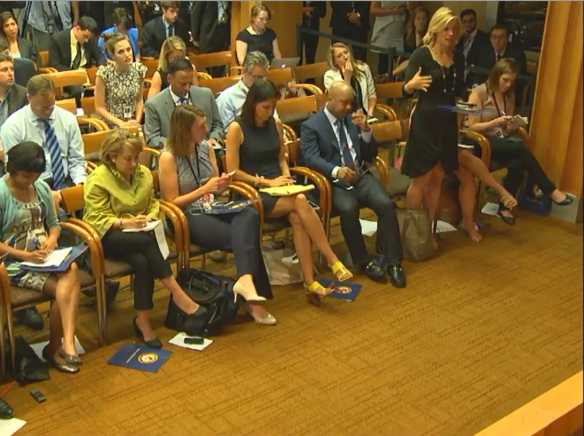 Also, the line of experts standing by the primary speaker to answer questions is quite long.