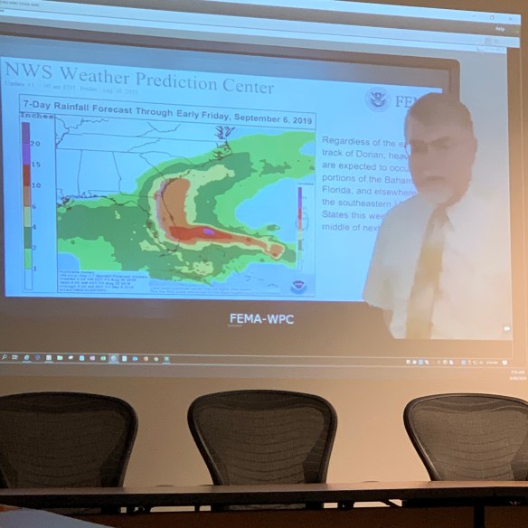 Morning start w/ our National Ops call and the FCO standup. NWS and our HQ folks working the magic for those in the path of Dorian.