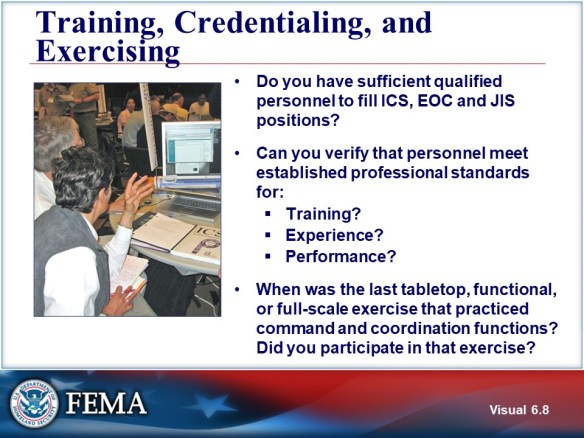 It is imperative that your personnel are trained and qualified to serve roles in the ICS structure as well as in the EOC and JIC. Without comprehensive training in the roles as well as experience in the position – agencies could be susceptible to litigious actions with untrained staff/personnel in any planned event, emergency, or disaster.