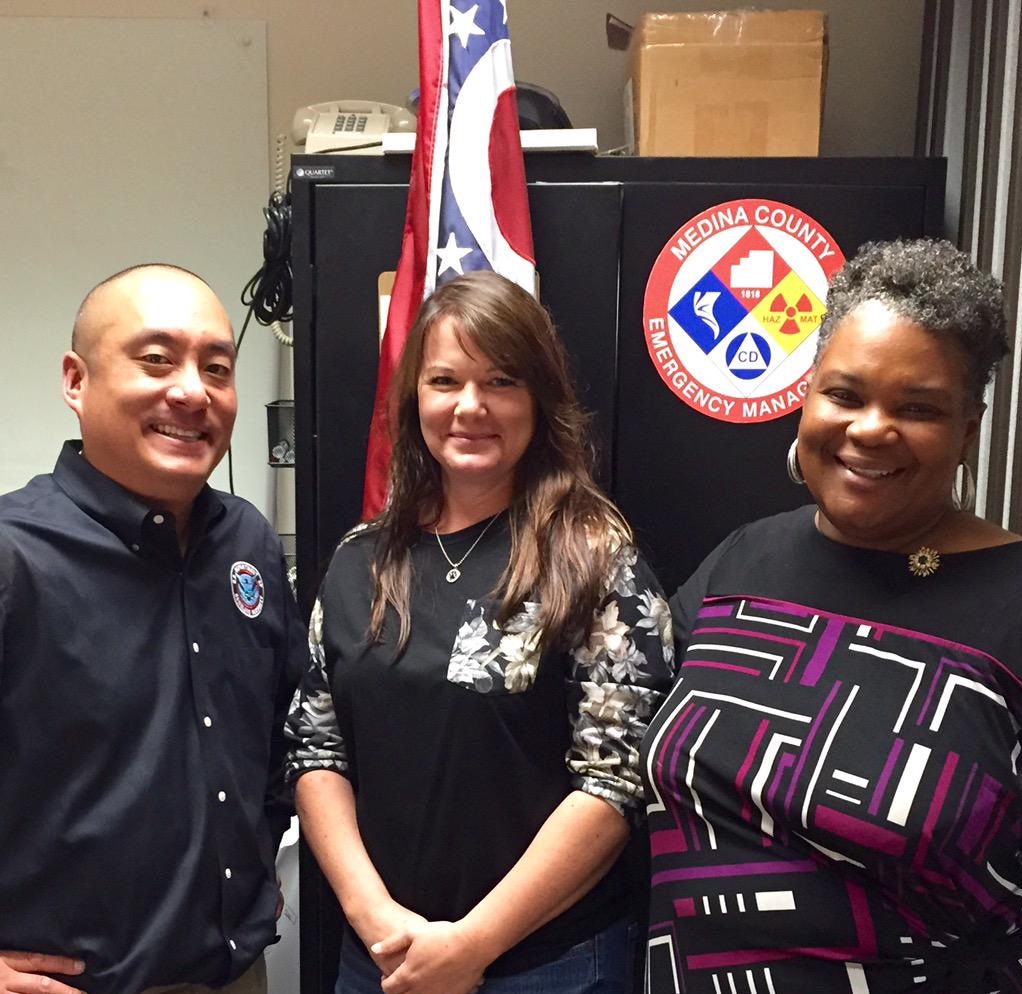 (L to R): PIO Instructor Kevin Sur, Medina County Emergency Management Director Christine Fozio, and PIO Instructor Monique Witherspoon.