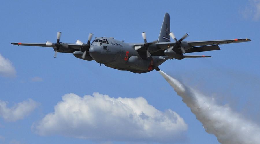 National Guard members have retrofitted various aircraft including this C-130 with alternate equipment for wildfire operations.