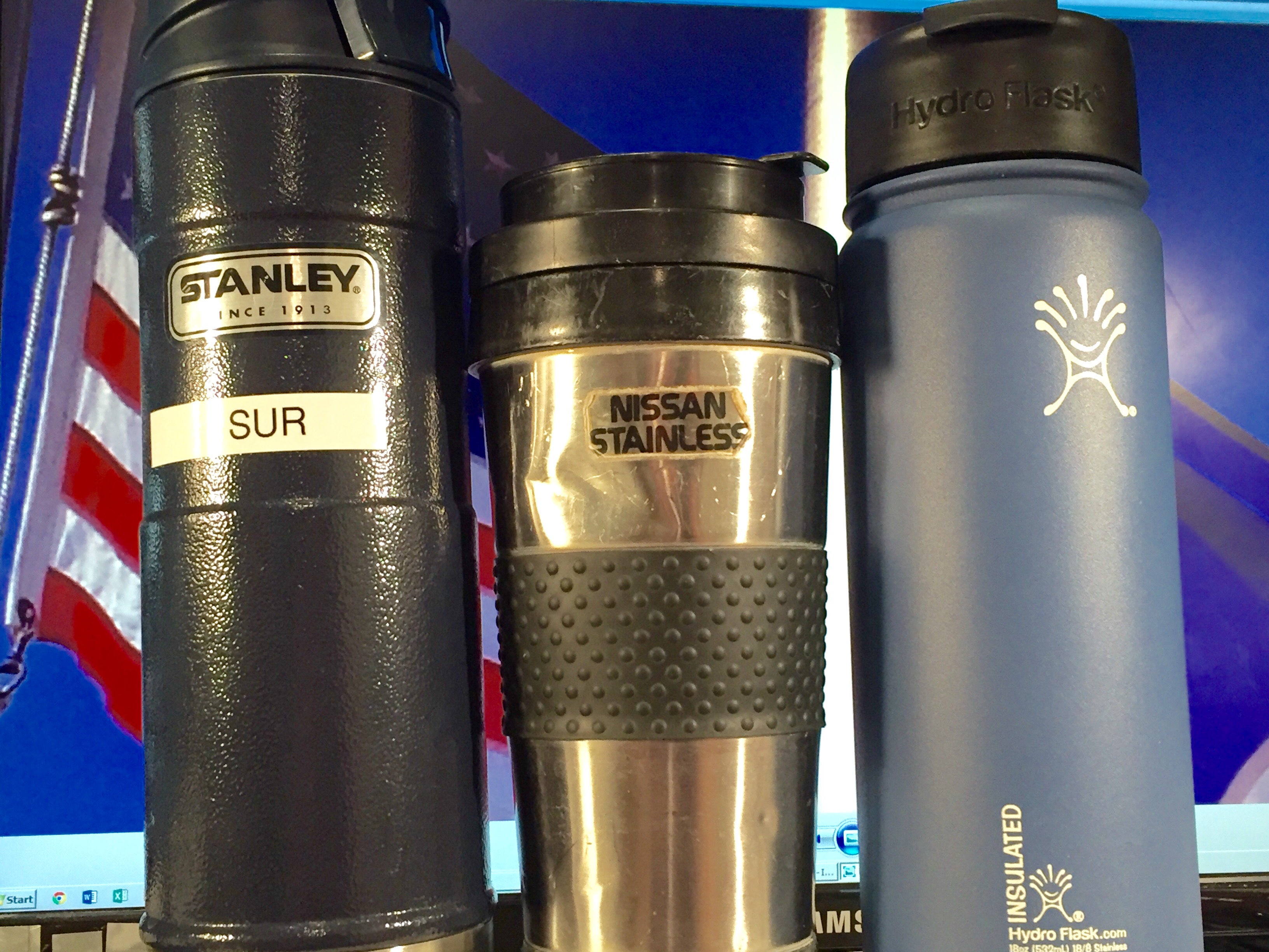 Stanley mugs that have been traveling and deploying out with me for the past 5 years. I usually carry two – one for my black coffee and the other for my water (also backup for coffee).