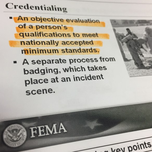 Our class also had lots of discussion on this slide as we view credentialing as a preparedness activity as we look to standardization and qualifications.