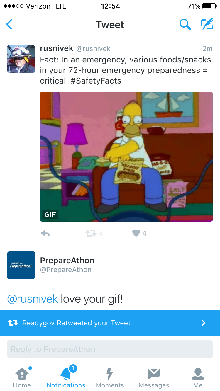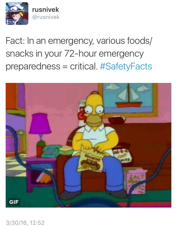 But if you talk to them and help them assemble their preparedness kits WITH SNAX, you will have helped increase their readiness for any disaster/emergency.